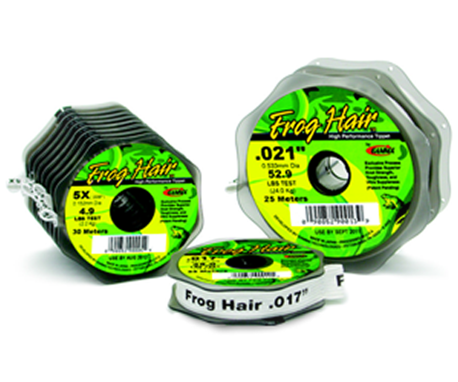 Frog Hair Tippet provides a more natural presentation, creates more hook-ups and provides maximum fish fighting capabilities for the angler. Features include: Super high tenacity mono, Highest strength to diameter, Built-in shock resistance, Superior knot strength, Ultra supple, Exacting tolerances perfected, True competitive advantage